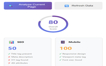 SEO Analyzer Pro من AIO.com.ai هو ملحق مجاني لمتصفح Chrome مصمم لتحليل SEO الفوري ومراجعات المواقع. يقدم هذه الأداة رؤى حول جوانب مختلفة من الموقع بما في ذلك SEO، قابلية الاستخدام على الهواتف المحمولة، وأداء وسائل التواصل الاجتماعي بنقرة واحدة فقط. يمكن للمستخدمين الحصول على تقارير قابلة للتنفيذ تبرز مشكلات الوصول، والقراءة، وقابلية الاستخدام، والرؤية التي تؤثر على مواقعهم أو مواقع المنافسين. مع ميزات مثل مراجعة الروابط الخلفية واكتشاف التكنولوجيا، فإنه يعد مصدرًا قيمًا لمالكي المواقع، والمسوقين، والمطورين على حد سواء.
